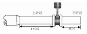 2、缩管的安装 对于大口径小流量,必须缩管安装,同时保证流量计的前直管段≥15D,后直管段≥5D |