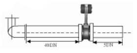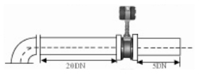 3、弯管的安装 如果流量计的前端有90°弯头或T型接头,要保证流量计的前直管段≥15D,后直管段≥5D |